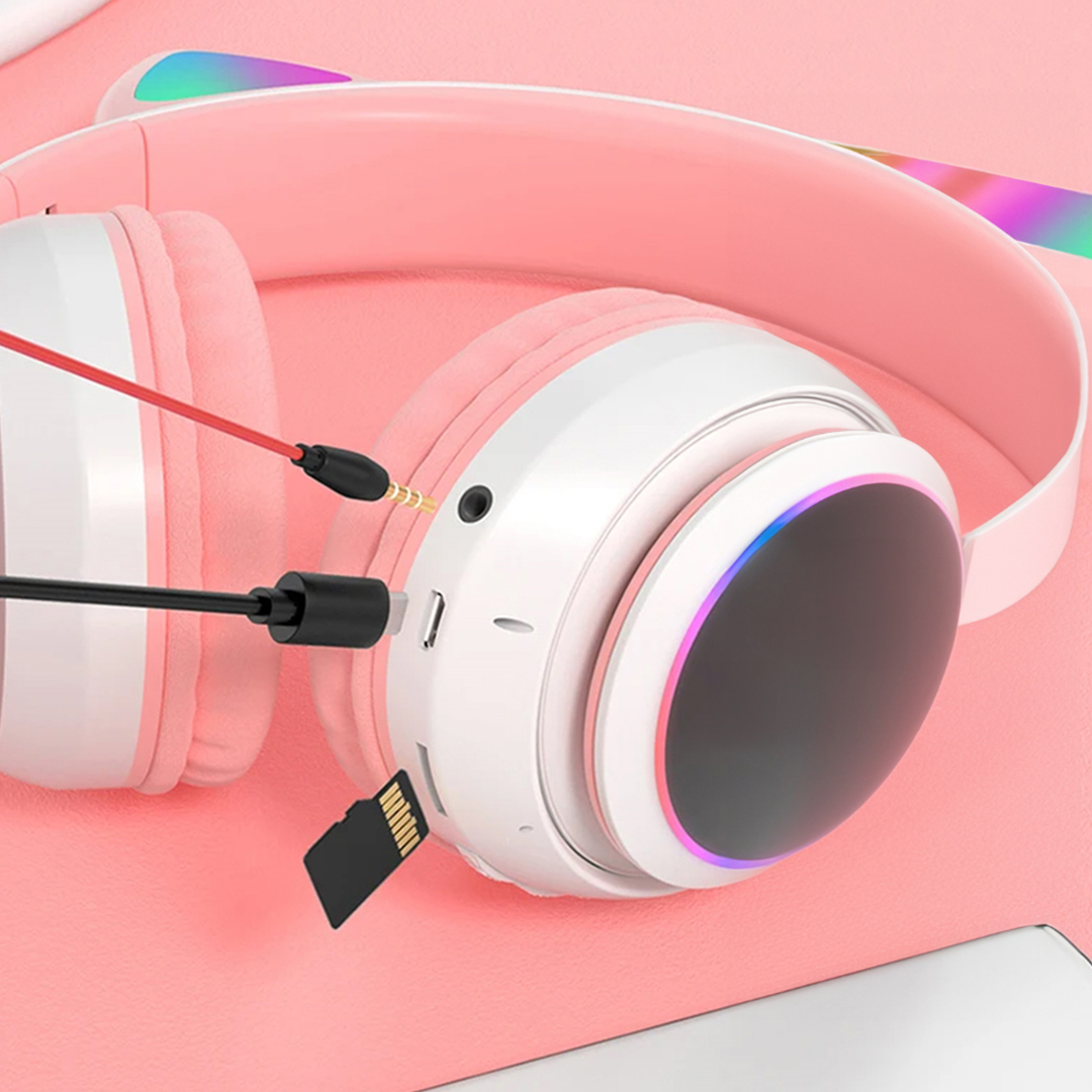 • سماعات CTN28 للبنات بتصميم لطيف على شكل قطة مع إضاءة RGB ملونة تجعل تجربتك ممتعة ومليئة بالأجواء.